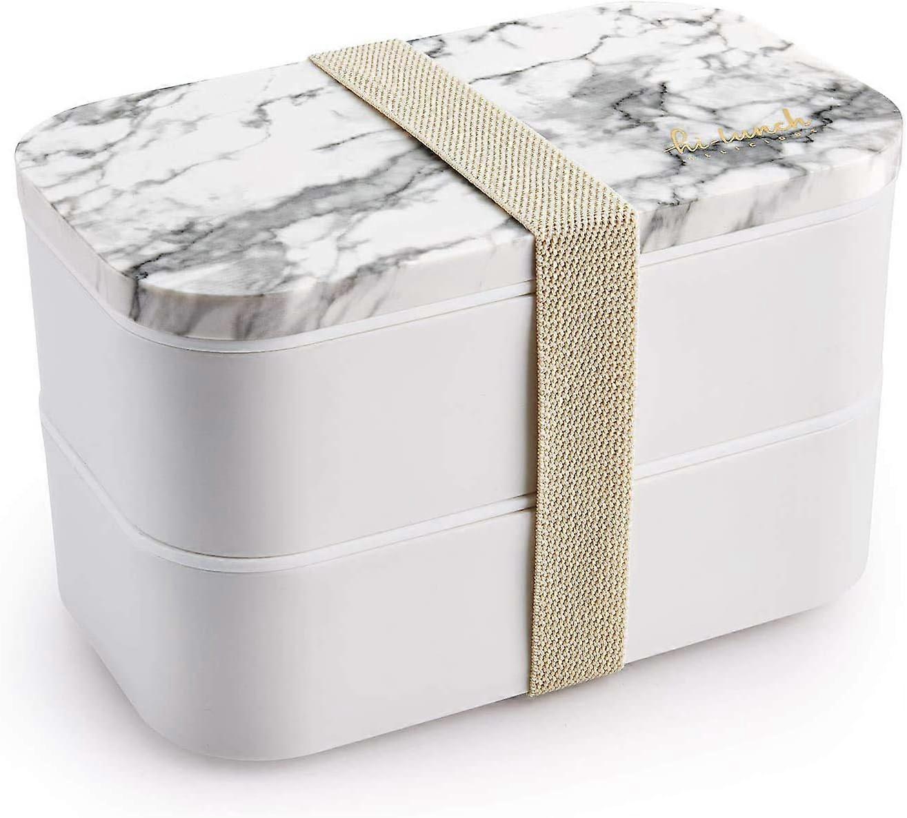 Stackable Bento Box Adult Lunch Box - 1.6L Lunch Container with Fork & Spoon, BPA-Free, Leak-Proof for On-The-Go Meal and Snack Packing (White)