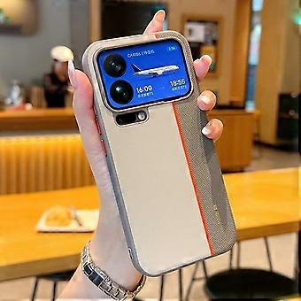 For Xiaomi 17 Pro Case Splicing PC + PU Leather Phone Back Cover with Metal Lens Ring Buttons - Grey