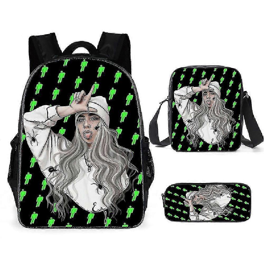 Starlight-3pcs/set Billie Eilish School Bag Satchel Casual Backpack With Messenger Bag And Pencil Bag