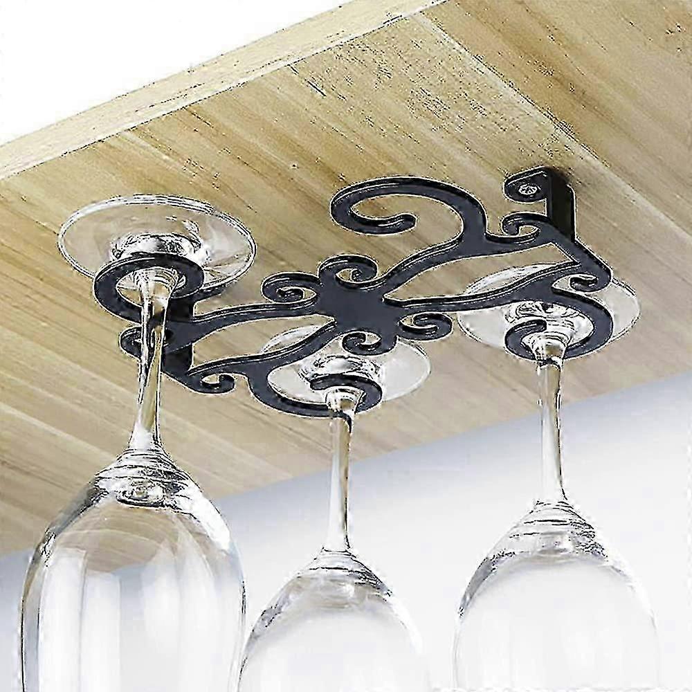 Wine Glass Holders Hanging under Shelf, Wine Glass Rack Storage under Cabinet Stemware Organizer for Kitchen, Bar, 4 Slots, 1pc hwy