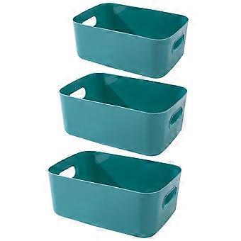 Storage Basket Plastic Clothes Storage Boxes for Desktop Use 3Sets Green