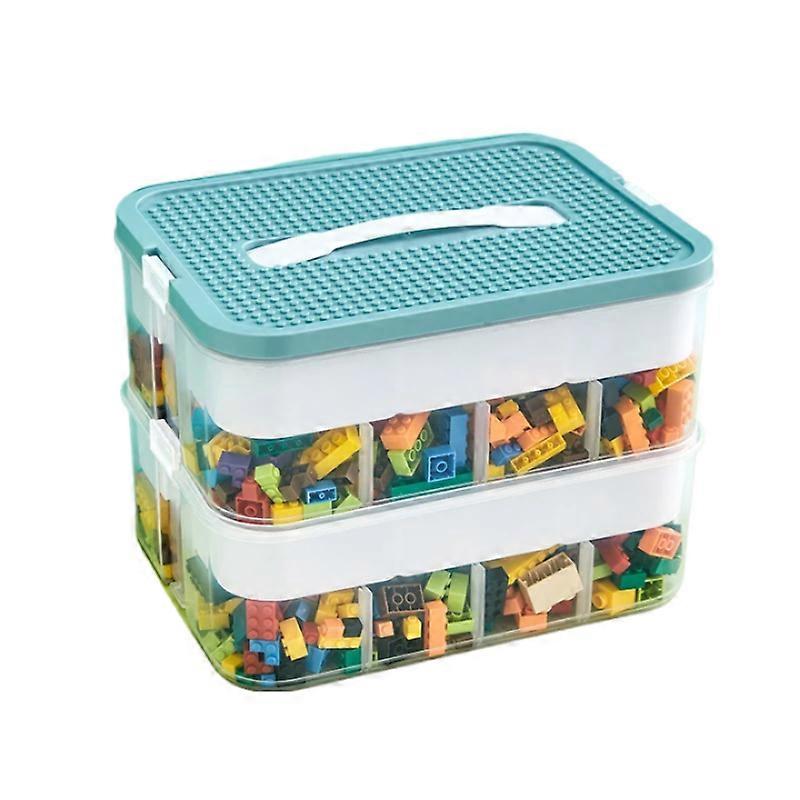Storage Box Green With White Line Two Layers Stackable Organizer Storage Boxes