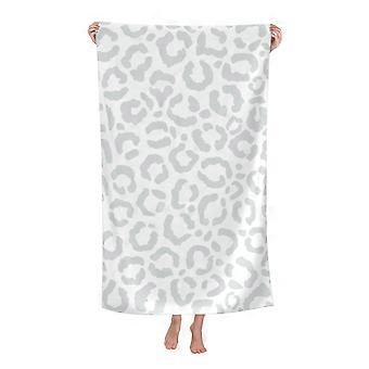 Hiekkankestävä, nopeasti kuivuva rantapyyhe, jossa valkoharmaa leopardikuvio, kevyt ja imukykyinen uima-allasmatkailukäyttöön
