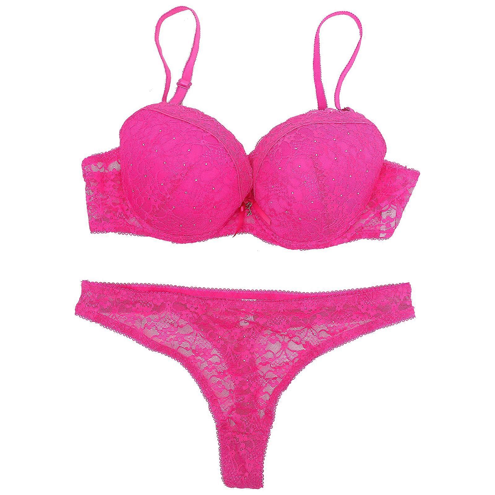 Women Lingerie Strappy Sexy Lace Bra Set See-through Lingerie Underwear Panties 80B (Rosy)