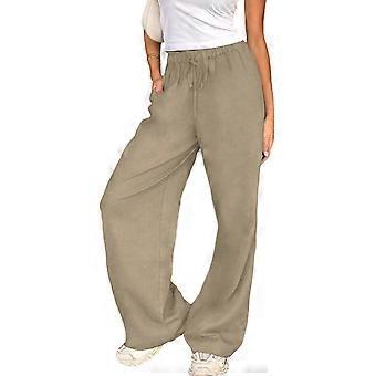 Stylish Low Waist Linen Pants with Soft Texture and Adjustable Drawstring Casual Low Waist Straight Trousers Khaki S