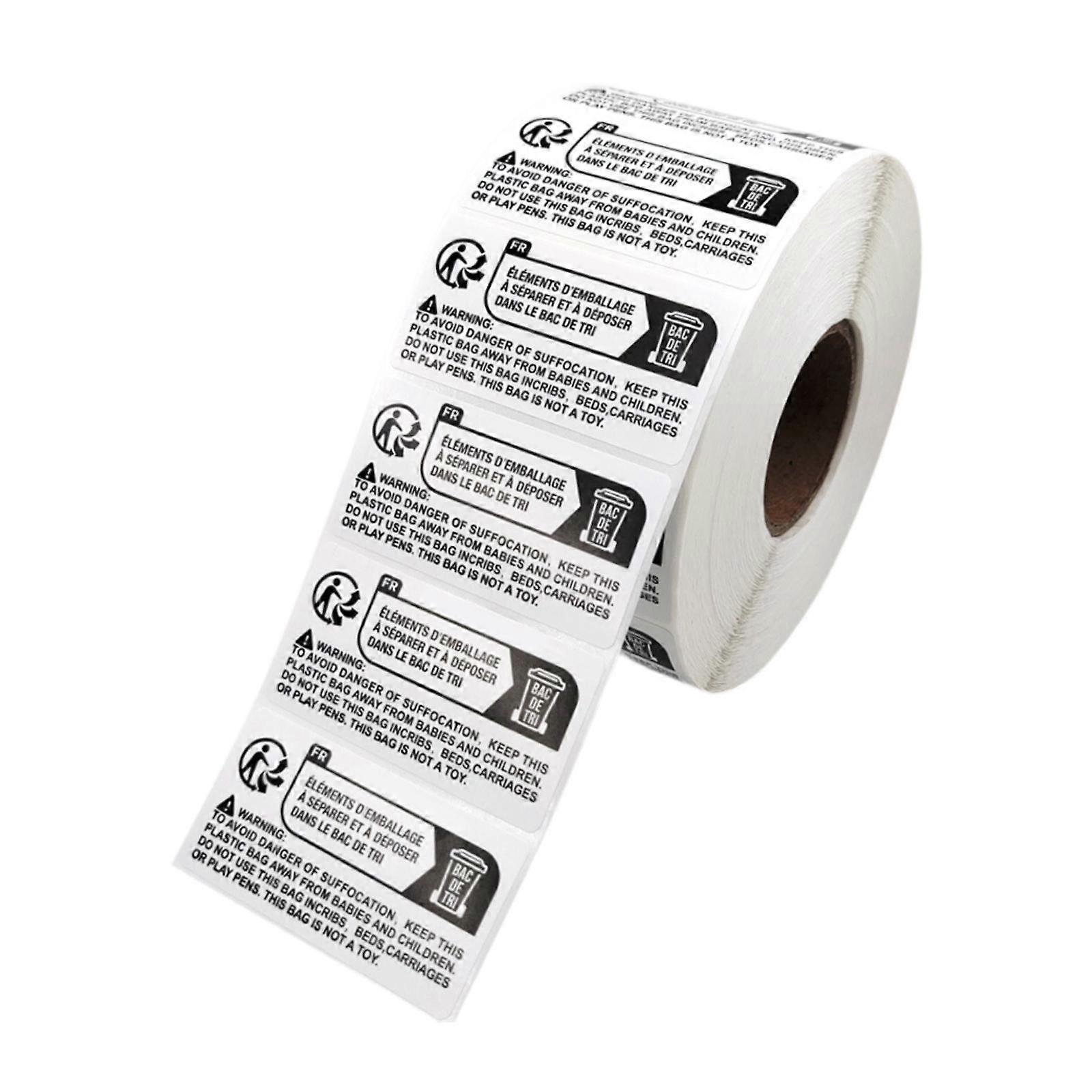 Suffocation Warning Labels Polybag Shipping Supply Removable Shipping Labels 6x3 cm