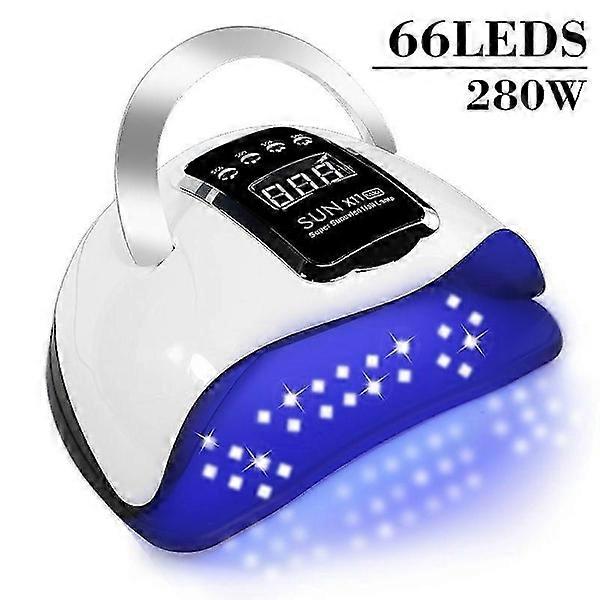 PORTABLE DESIGN: Weighing only 500g, this compact nail dryer is easy to store and carry, perfect for manicurists on the go. CE-CERTIFIED SAFETY: With CE certification, users can trust the safety and quality standards met by this professional nail dryer lamp. HIGH-POWER UV LED NAIL LAMP: Featuring a robust 280W motor, this SUN X11 MAX nail dryer ensures fast and thorough drying of gel polish. DURABLE ABS MATERIAL: Crafted from durable ABS material, this nail dryer promises long-lasting performance and wear resistance. AUTOMATIC SENSOR FUNCTION: Equipped with an advanced automatic sensor, the UV LED nail lamp activates when a hand is inserted and deactivates when removed for enhanced convenience.