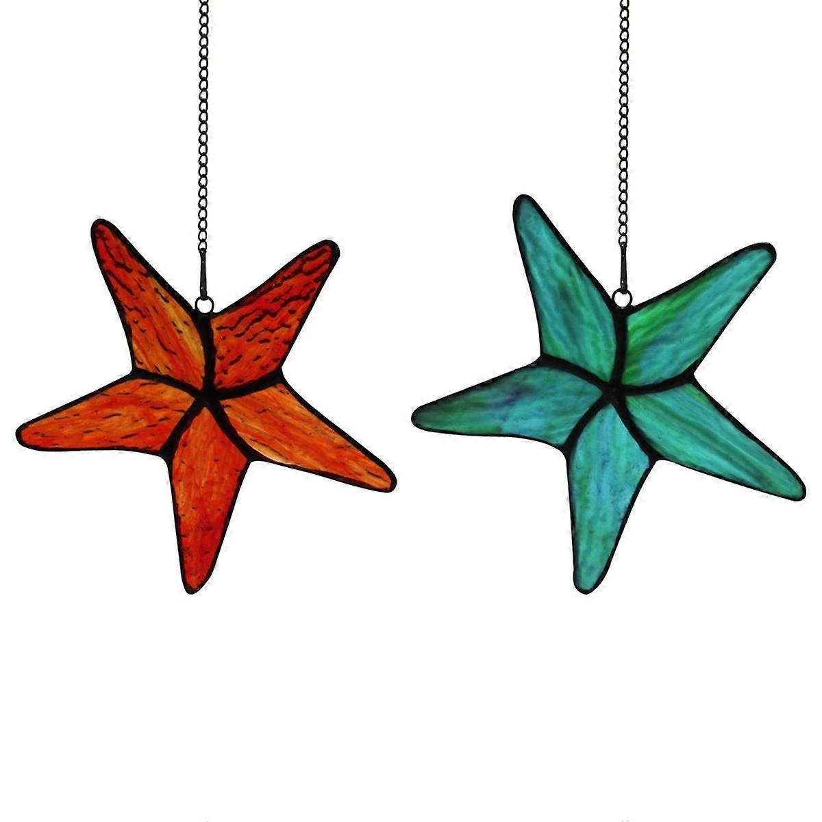Stained Glass Window Hanging Starfish Decor, Star Fish Suncatcher for Window,Wall Decor, Shells and