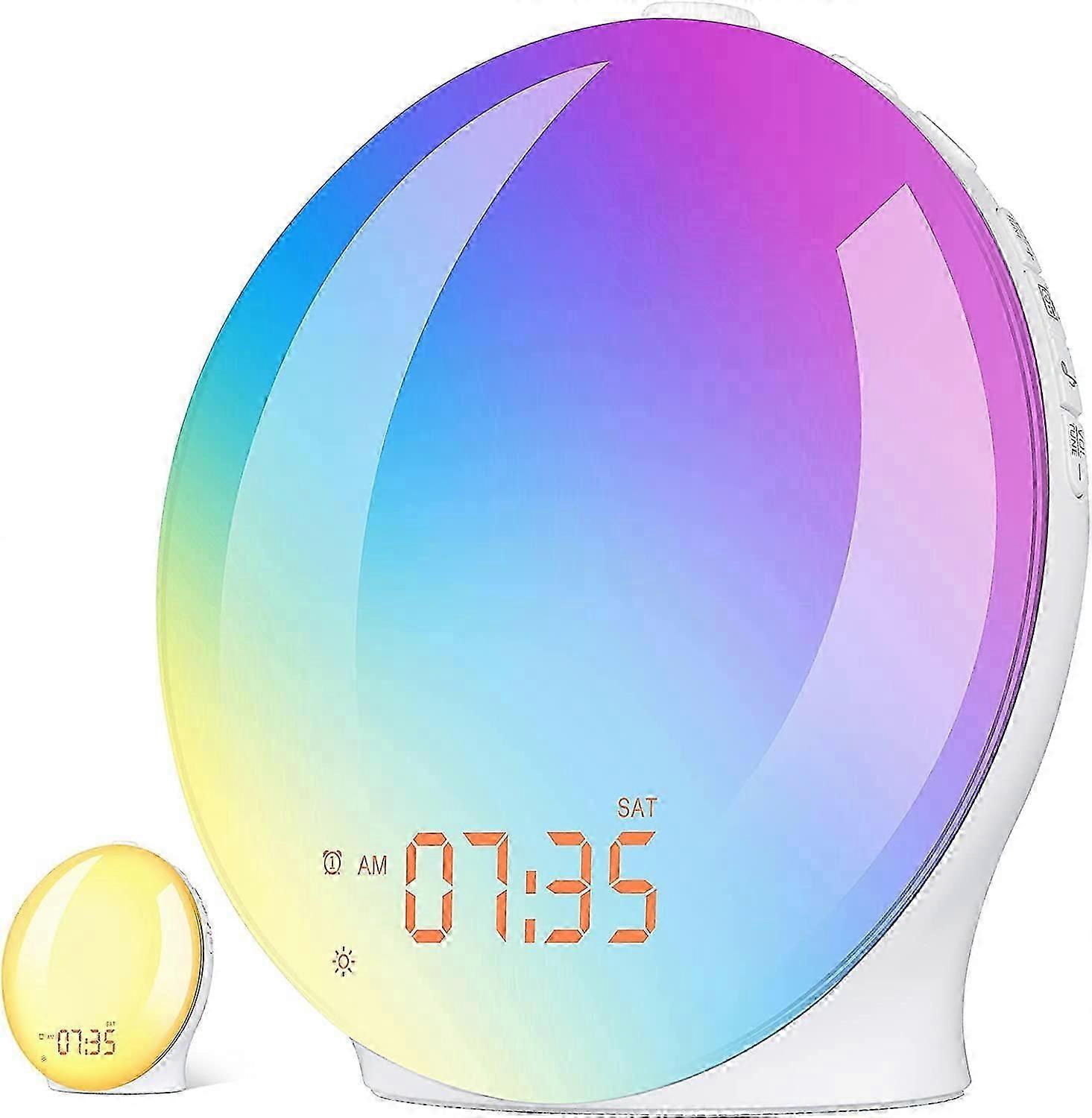 Sunrise Alarm Clock Wake Up Light Fullscreen 14 Light Modes No Shadow 320 Lux Sunrise Simulation Digital Alarm Clock for Bedrooms Radio Heavy Sleepers