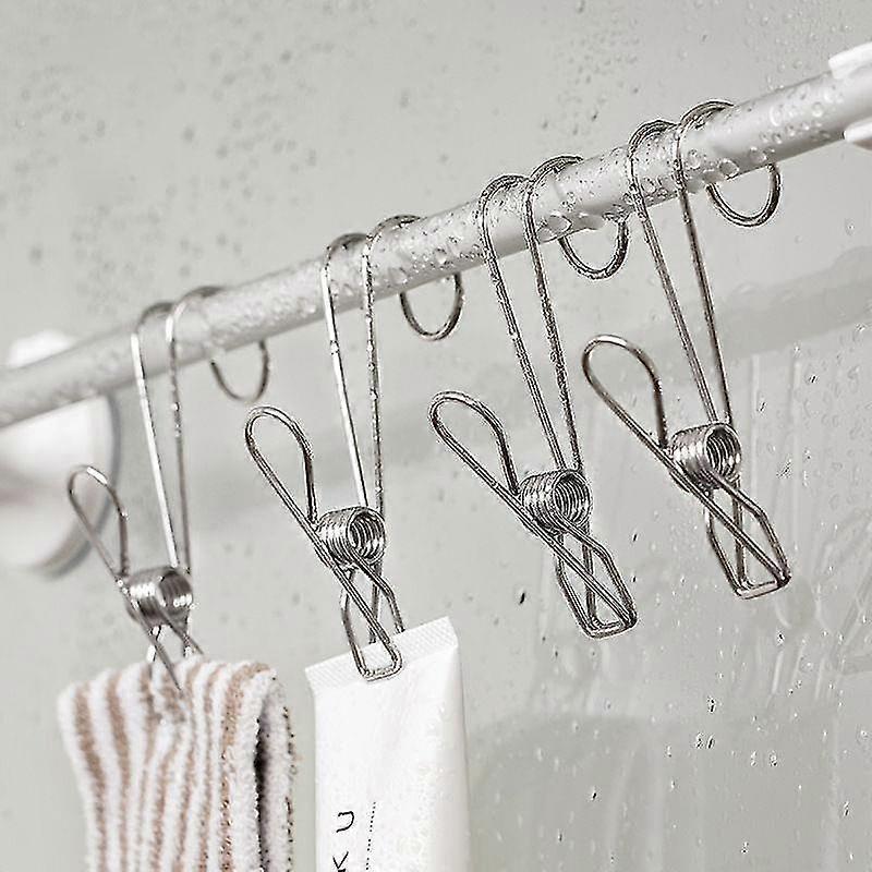 SZTXJ 14 Pack Stainless Steel Short Shank Hanger Clips with Hook, Universal Hanging Pegs, Heavy Duty Multi-Function Clothespins for Displaying Storage