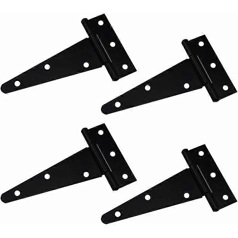 T-hinge, triangular hinge, heavy-duty T-hinge, galvanized triangle, 4 inches, black. Can be used for hanging...-T-Hinge Triangular Hinge Heavy Duty Galvanized Triangle T-Hinge 4 Inch Black Can be used for hanging cabinet doors, garden doors, wooden crates 4 pieces Note: Easy installation and easy to use. Hinge Specifications: Width: 63 mm, Length: 100 mm, Thickness: 1.2 mm, Height: 22 mm, Shank Width: 0.68 cm. Wide Range of Uses: T-hinges are used for hanging cabinet doors, garden doors, side doors, wooden crates, etc. Product Quality: Ensures resistance to external influences. The hinge is galvanized. The hinge is black. The powder-coated surface prevents rust on our load straps. High corrosion resistance, stable in humid environments. Material: Made of high-quality steel with a long service life. The stable structure firmly connects the door and gate. The design and shape of the cargo are very lightweight. Instructions: It can be installed on gates, wooden doors, garden doors, closet doors, side doors, wooden crates, etc. High-quality materials: The galvanized surfaces not only prevent mechanical damage but also scratches and dents. Package contents: 4 T-hinges Color: Black Size: 4 inches How to use: The T-hinges can be used to hang cabinet doors, garden doors, side doors, wooden crates, etc. Install the T-hinges on the door, secure the position with a pin to avoid misalignment, then tighten with screws. Installation is simple and user-friendly; no special installation tools are required.