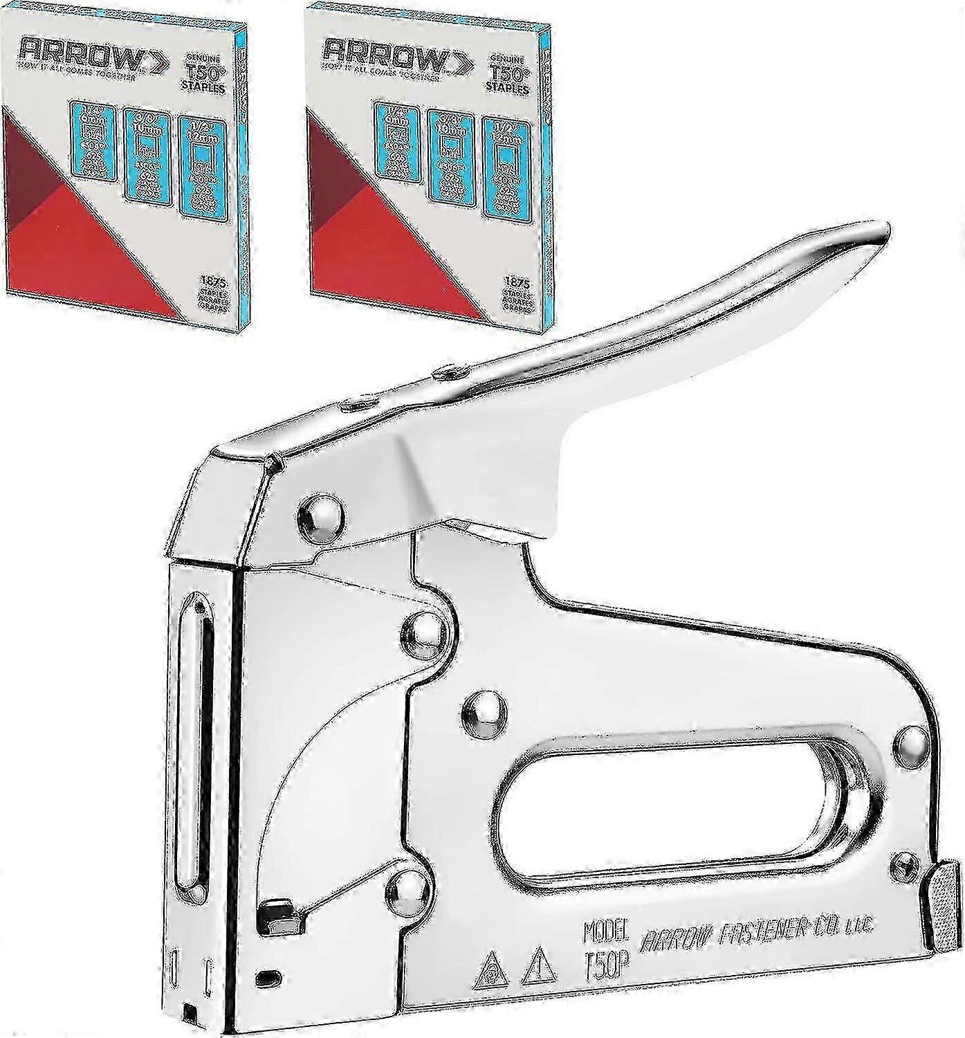 T50 Heavy Duty Staple Gun Kit All Chrome Steel Stapler With 3750 Pieces T50 1/4" 3/8" 1/2" Staples For Upholstery Professional Projects