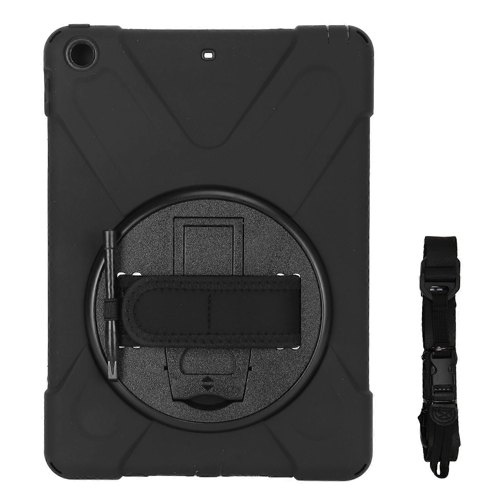Tablet Case Silicone Hard PC Precise Cutouts Adjustable Strap Rotating Kickstand Case for IOS Tablet 9.7in 2017 2018 Black