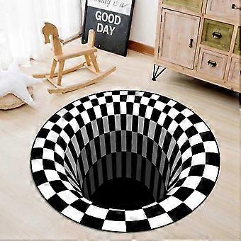 3D جولة السجاد الأسود الأبيض الوهم السجادة ، عدم الانزلاق حصيرة الباب لديكور المنزل السجاد (60 سم)