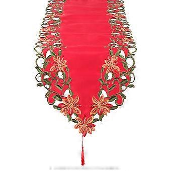Jouluinen lumihiutalekuvioinen pöytäliina perhejuhlaruokapöytään, 106,11 x 11 tuumaa, tummanpunainen, polyesteri, 3 kpl