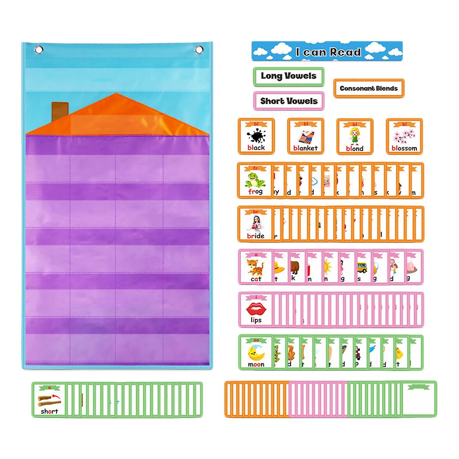 Teaching Pocket Chart with 154 Vowel Card Word Recognition for Homeschool