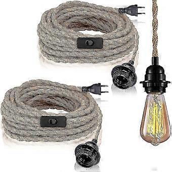 طقم من مصباحين معلقين مع مفتاح، حبل قنب مع كابل بطول 4.5 متر، مقبس E27 للقاعة، المطبخ، طاولة الطعام، البار (بدون لمبة)