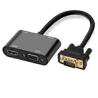 محول VGA إلى HDMI VGA 1 في 2 مع كابل صوت 3.5 ملم يدعم VGA إلى HDMI VGA PC Projector Multi