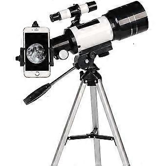 70 mm:n refraktorilla varustettu tähtitieteellinen kaukoputki erotuskykyoptiikalla, jalustalla ja puhelinsovittimella aloittelijoille ja lapsille