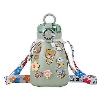 Kawaii زجاجة مياه، والقش وبطانة كبيرة كأس زجاجة مياه باردة معزولة (500ml، الأخضر)