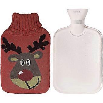 زجاجة مياه ساخنة 2 لتر مع غطاء آمن ودائم زجاجة مياه ساخنة مع نمط الرنة محبوك