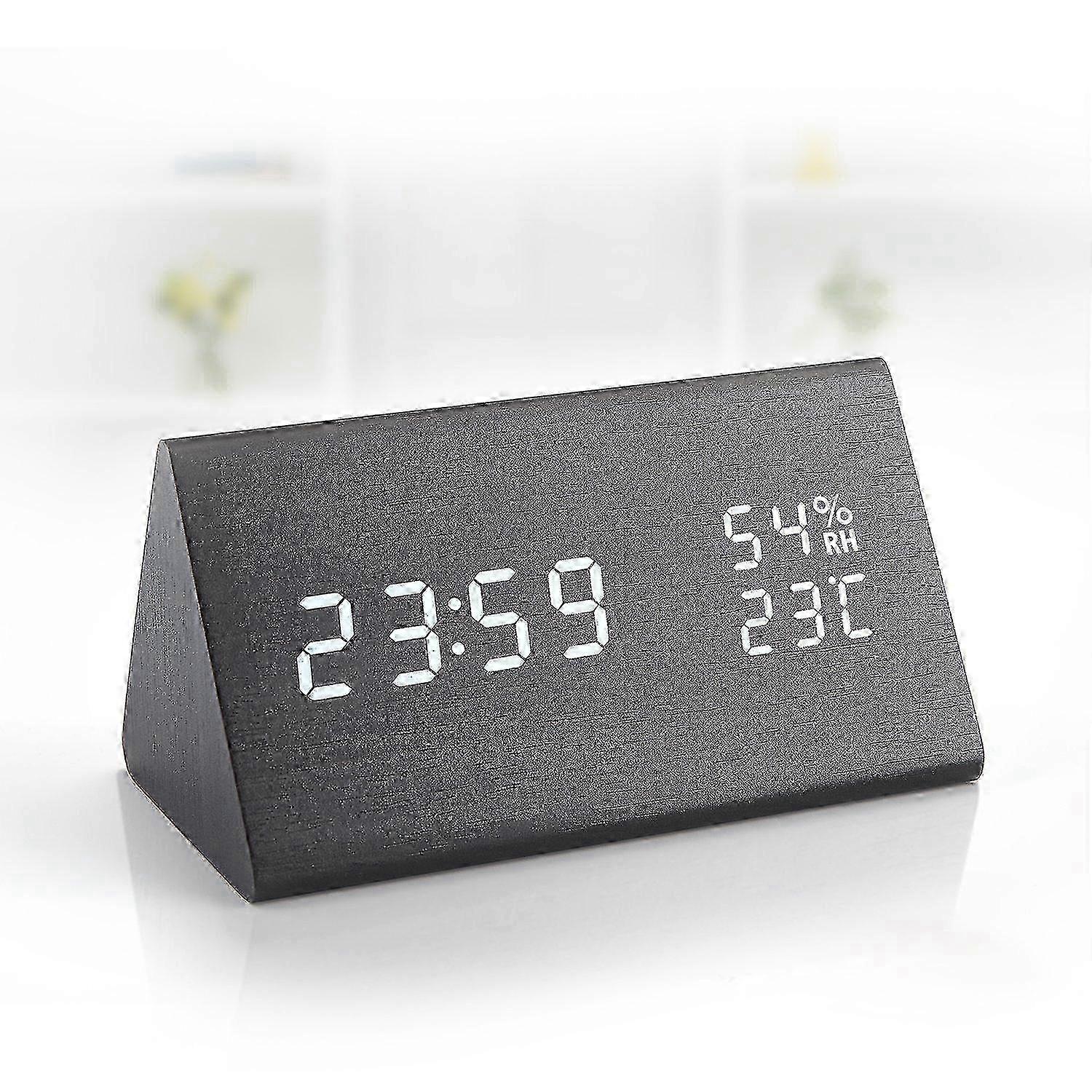 Elevate your mornings with a Time Keeper that not only tells time but adds a touch of sophistication to your space. Designed with elegance in mind, this alarm clock is more than just a timepiece; it's a decorative addition to your room. Its wooden design, coupled with functional features such as multiple alarms, adjustable brightness, and a snooze option, ensures you start your day right. Perfect for those who appreciate style and functionality, this clock makes a thoughtful gift for loved ones.Elegant Wooden Design : This Time Keeper features a refined wood-made exterior, blending seamlessly into your room's decor, whether it's the bedroom, office, or living room. Multiple Alarms and Snooze : Never miss another appointment with our versatile alarm settings, offering you three distinct alarms, each lasting about 1 minute, plus a snooze function to catch some extra Z's. Adjustable Brightness : Our clock boasts a dimmable display, allowing you to customize the brightness level according to your preference, ensuring a comfortable night's sleep without disturbing lights. Temperature Display and Humidity Sensor : Stay informed about the environmental conditions with our built-in sensors that monitor both temperature and humidity, enhancing your daily comfort. Dual Power Supply : Stay connected with our dual power options - plug it in via USB for continuous use or use 4 AA batteries (not included) for added convenience. Note: Due to the light and screen setting difference, the item's color may be slightly different from the pictures. Please allow slight dimension difference due to different manual measurement.