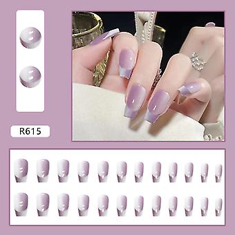 24pcs الأرجواني مسمار التصحيح الحلو نمط طويل الفقرة القابلة للإزالة مانيكير توفير الوقت
