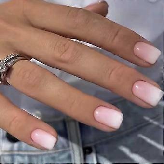 24pcs الأبيض والوردي ارتداء فقرة طويلة أزياء مانيكير التصحيح الأظافر كاذبة توفير الوقت يمكن ارتداؤها