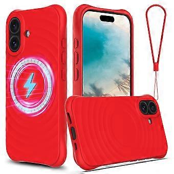 TKdaddy For iPhone 17 Case Compatible with MagSafe Ripple Texture Liquid Silicone Protective Cover with Strap Red
