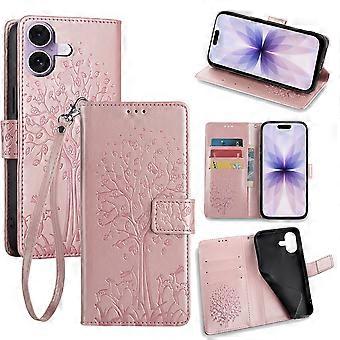 TKdaddy For iPhone 17 Case PU Leather Wallet Phone Cover Tree Deer Imprinted Rose Gold