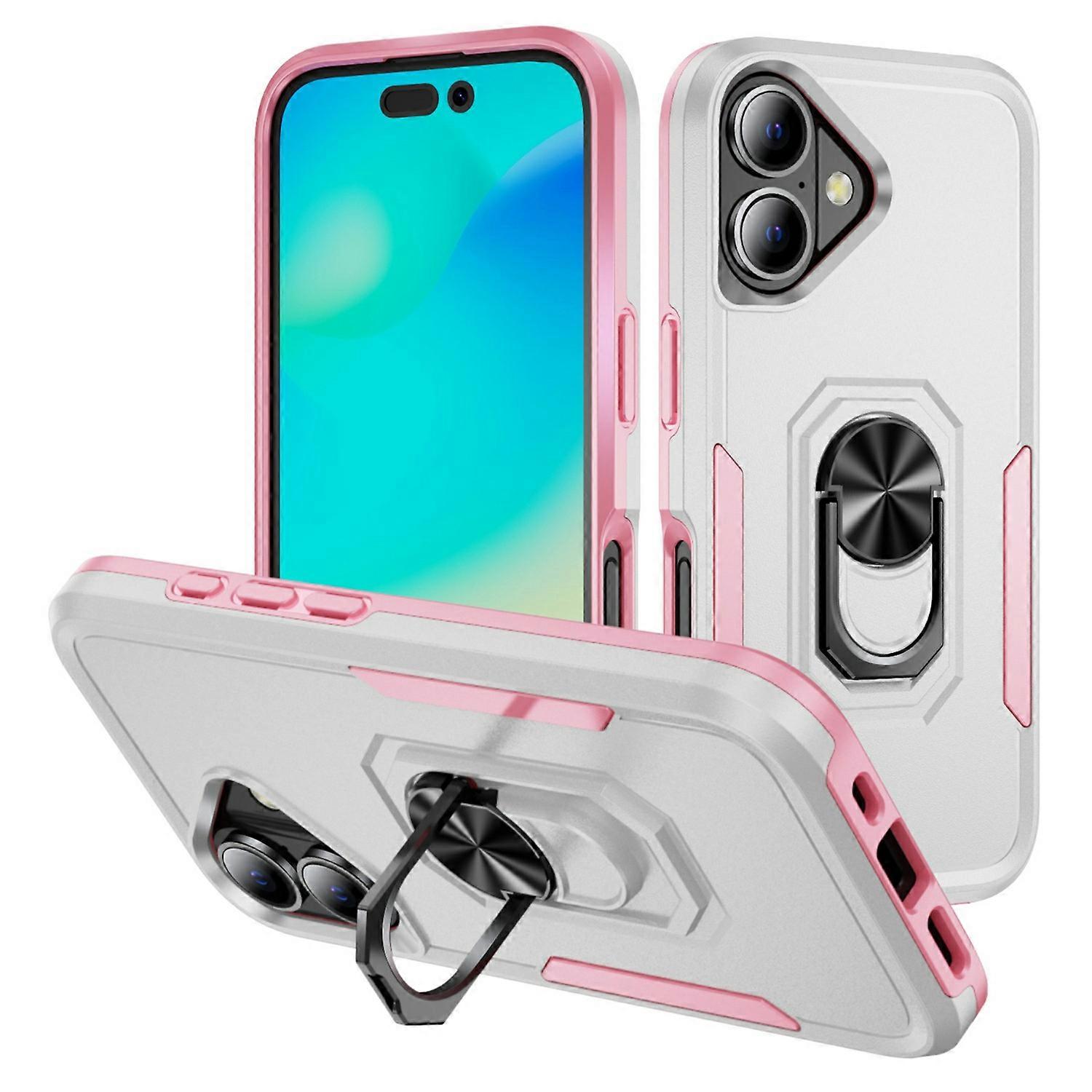 TKdaddy For iPhone 17 Case Military Grade Ring Kickstand PC + TPU Phone Cover White + Pink