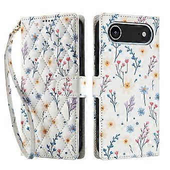 TKdaddy لجهاز iPhone 17 Air Wallet Case غطاء هاتف جلدي بتصميم أزهار معيني مع حزام A2