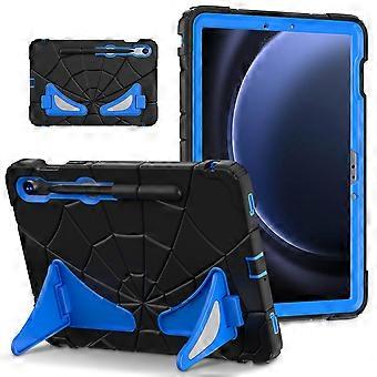 TKdaddy For Samsung Galaxy Tab S7 S8 S9 SM-X710 S10 FE S9 FE Case Spider Web Silicone+PC Rugged Protective Cover Black+Blue