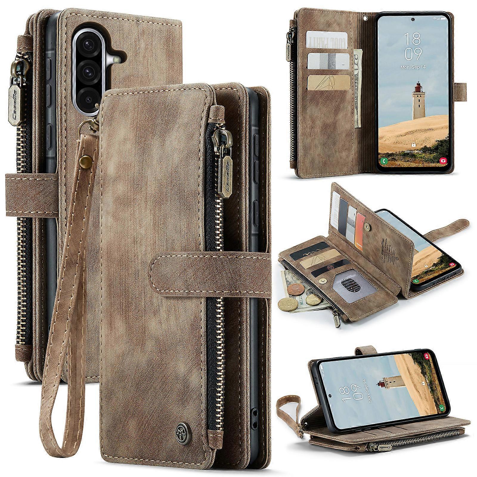 TKdaddy For Samsung Galaxy A17 5G Phone Cases with Strap CASEME C30 Zipper Multiple Card Holder PU Leather Cover Brown