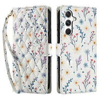 TKdaddy لسامسونج جالاكسي A25 5G (عالمي) (161.0 × 76.5 × 8.3 ملم) غطاء هاتف جلدي بتصميم زهري معيني مع حزام A2