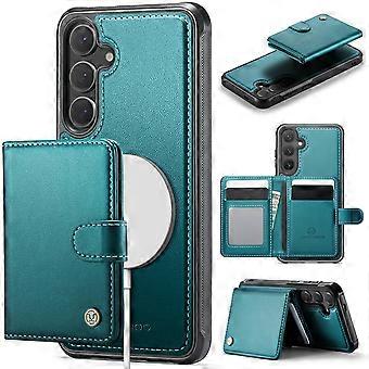 TKdaddy For Samsung Galaxy S25+ Case JEEHOOD J09 RFID Blocking Card Holder Leather Back Phone Cover Compatible with MagSafe Green