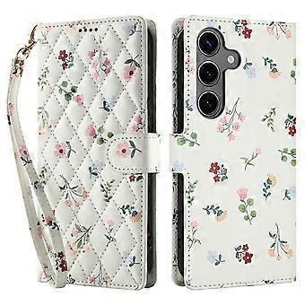 TKdaddy لسامسونج جالاكسي S25 FE حافظة محفظة غطاء هاتف جلدي بتصميم أزهار معيني مع حزام A1