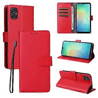 TKdaddy For Samsung Galaxy A06 5G / Galaxy A06 4G Wallet Case with Strap ENKAY HAT PRINCE RFID Blocking Leather Stand Phone Cover Red