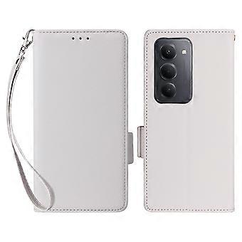 TKdaddy لشاومي ريدمي 15 4G (الاتحاد الأوروبي) (171 ملم) جراب مع حزام معصم ليتشي نسيج بو جلد بو غطاء هاتف محفظة أبيض