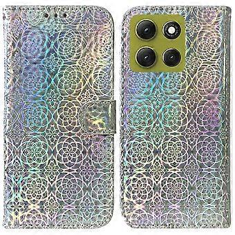 TKdaddy لموتورولا موتورولا موتو G86 5G حامل جراب مبهر زهرة جلد غطاء الهاتف مع حزام المعصم رمادي