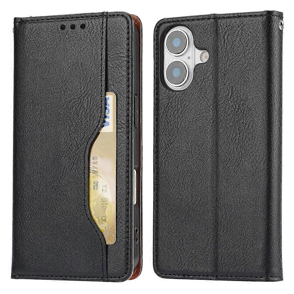 TKdaddy For iPhone 17 Cell Phone Case Magnetic Closing PU Leather Stand Cover Black