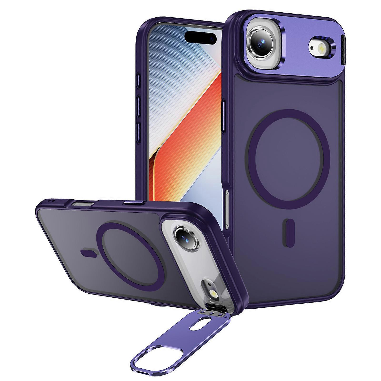 TKdaddy For iPhone 17 Air Magnetic Case with Lens Kickstand Skin-Touch PC + TPU Phone Cover Dark Purple