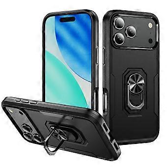 TKdaddy For iPhone 17 Pro Max Case Military Grade Ring Kickstand PC + TPU Phone Cover Black