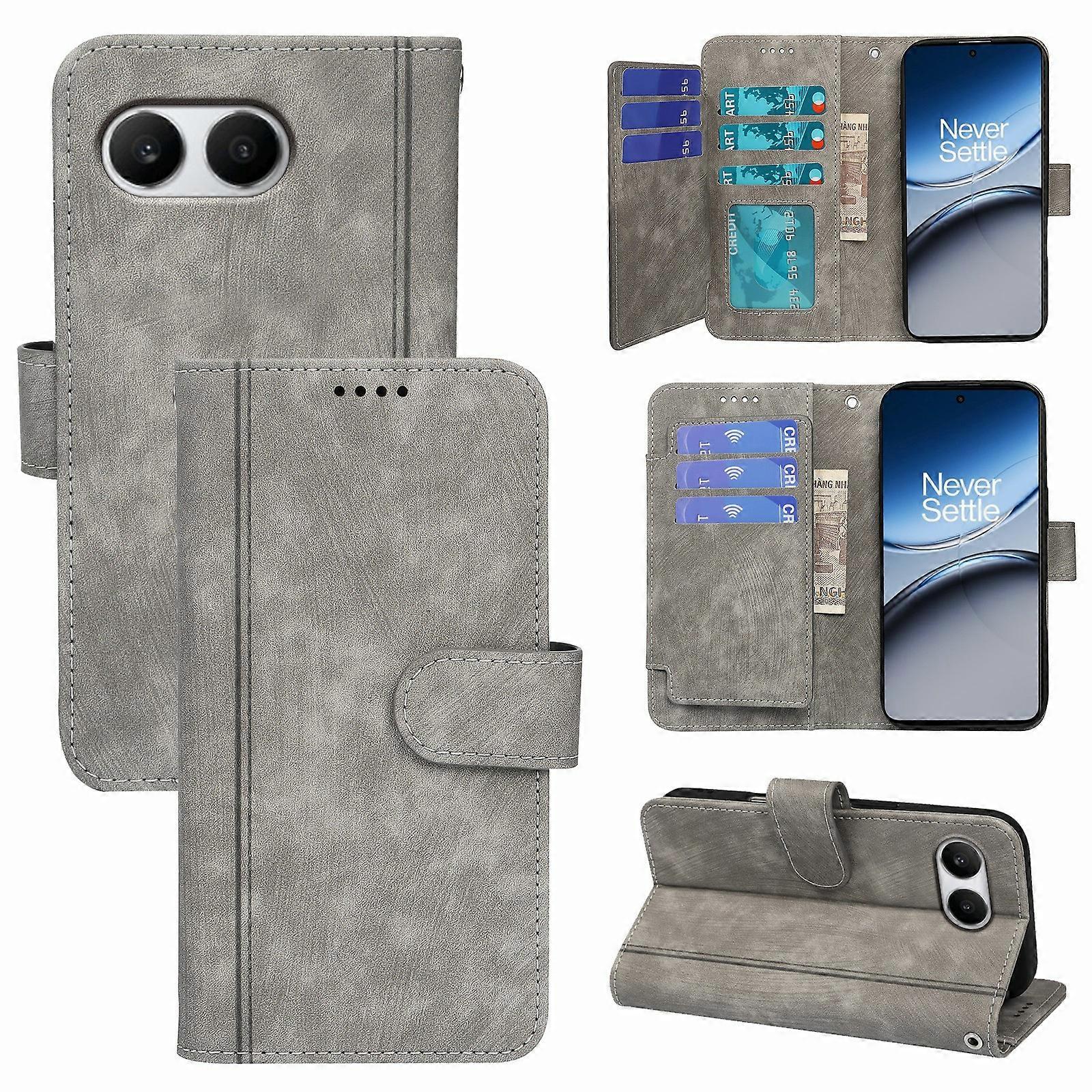 TKdaddy For OnePlus Nord 4 Leather Case Line Pattern Wallet Phone Cover with 9 Card Slots Grey