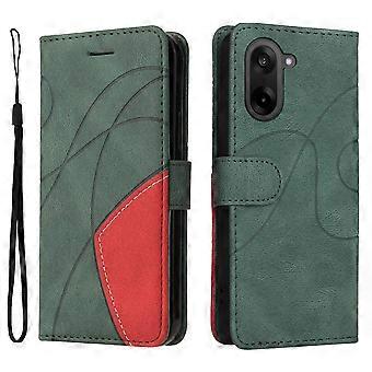 TKdaddy For OnePlus Nord CE5 5G / OnePlus Ace 5 Racing 5G Leather Phone Case Stand Wallet with Bi-colour Splicing Design Green