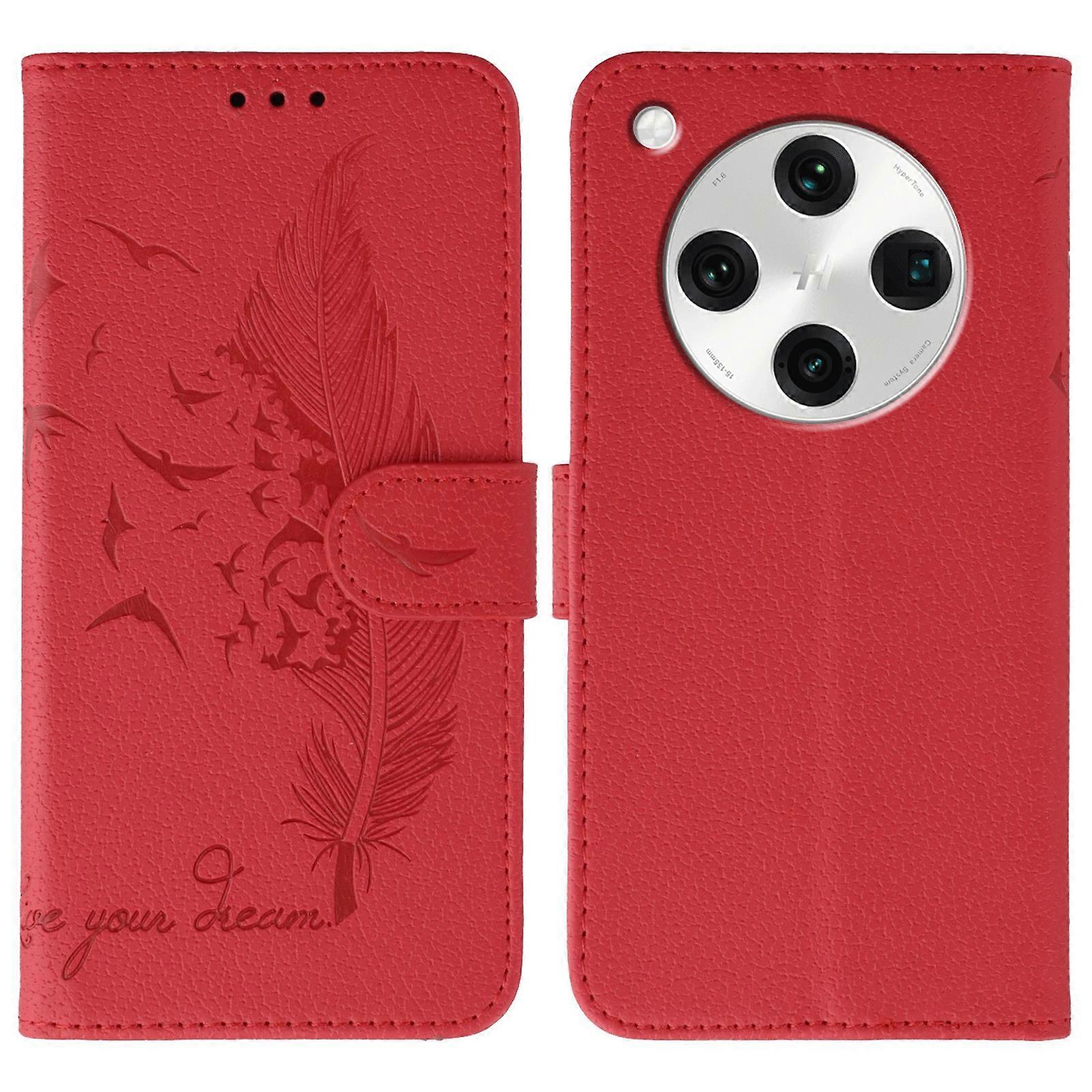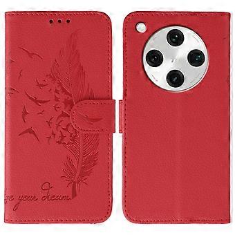 TKdaddy For Oppo Find X8 Pro 5G Case Feather Imprint PU Leather Wallet Phone Cover Red