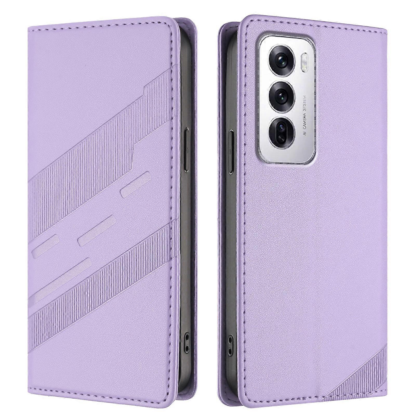 TKdaddy For Oppo Reno12 5G (Global) Phone Cases Punk Style Imprinted Wallet Stand Leather Cover Light Purple