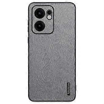 TKdaddy For Oppo Reno13 F 4G Case Wood Texture PU Leather Coated PC TPU Phone Cover Grey