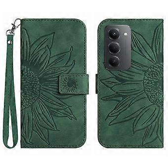 TKdaddy For Xiaomi Redmi 15 4G (EU) (171mm) Case Sunflower Imprint Leather Wallet Phone Cover with Wrist Strap Dark Green