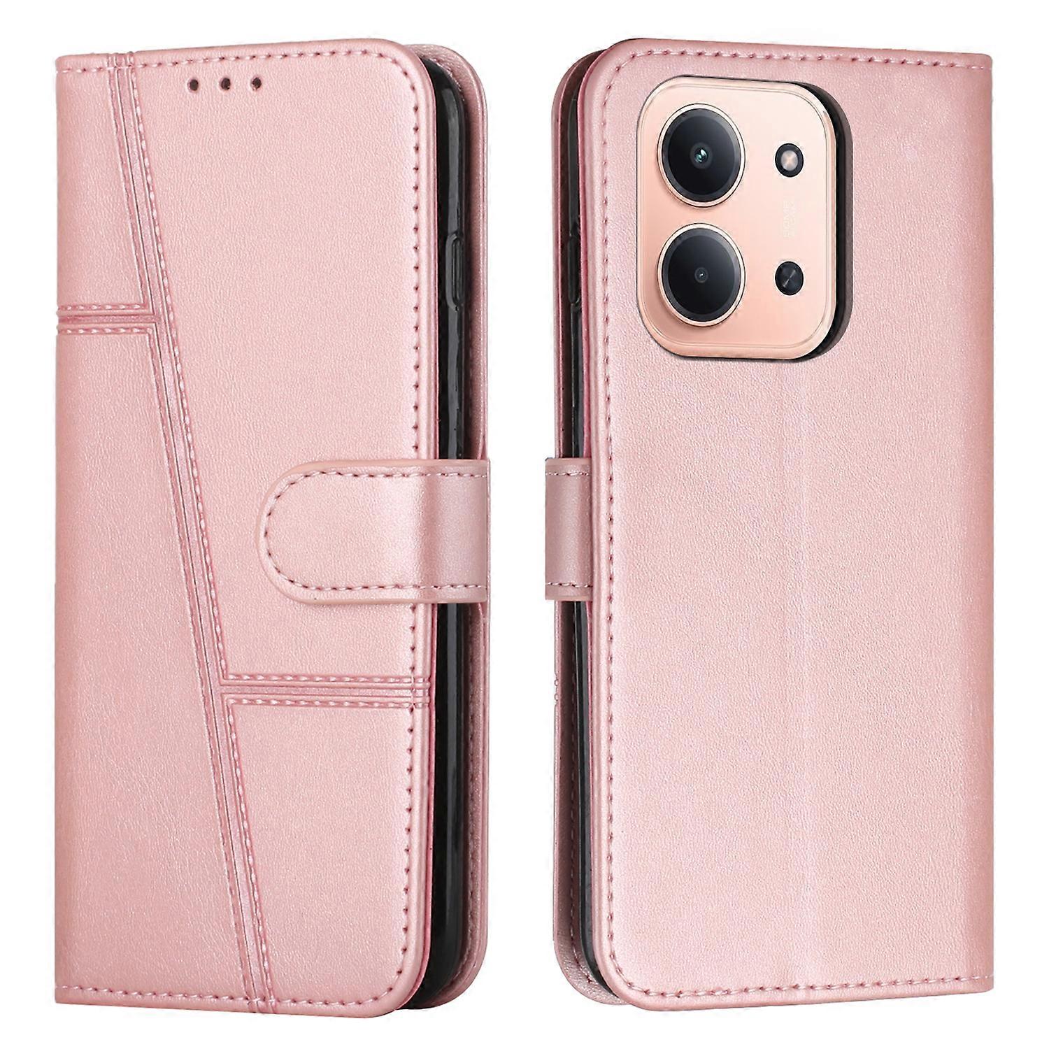 TKdaddy For Xiaomi Redmi 15C 4G (EU) (173mm) / 15C 5G (EU) (173mm) Leather Phone Case Foldable Stand Wallet Flip Cover with Strap Rose Gold